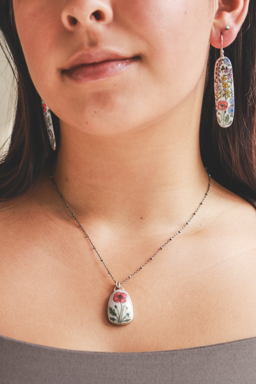 Pink & White Poppy Necklace