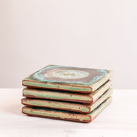 Thrown ceramic dish accented with fused & crackled glass. Some variation in color and size is due to the handmade nature of these items.