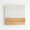 The wood is often worked green then allowed to warp and crack as it dries. After carving he paints or burns the surface to emphasize tool marks. The lines and textures carved in the wood are abstractions from the natural world; rocks, water, sand, waves, trees, ice, etc. Joseph primarily works within squares, rectangles and grids; exploring relationships between the organic carving and the machined lines.