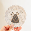 Handmade speckled stoneware mini-dish perfect for rings, keys, or teabags. Glazed with a matte terra sigilatta with hand-carved abstracted mountain sunrise, these trays are a perfect place for small trinkets.