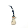 This beautifully handcrafted snowman ornament is made from stoneware clay and hung from a black velvet ribbon. It’s the perfect addition to your Christmas tree this holiday season!